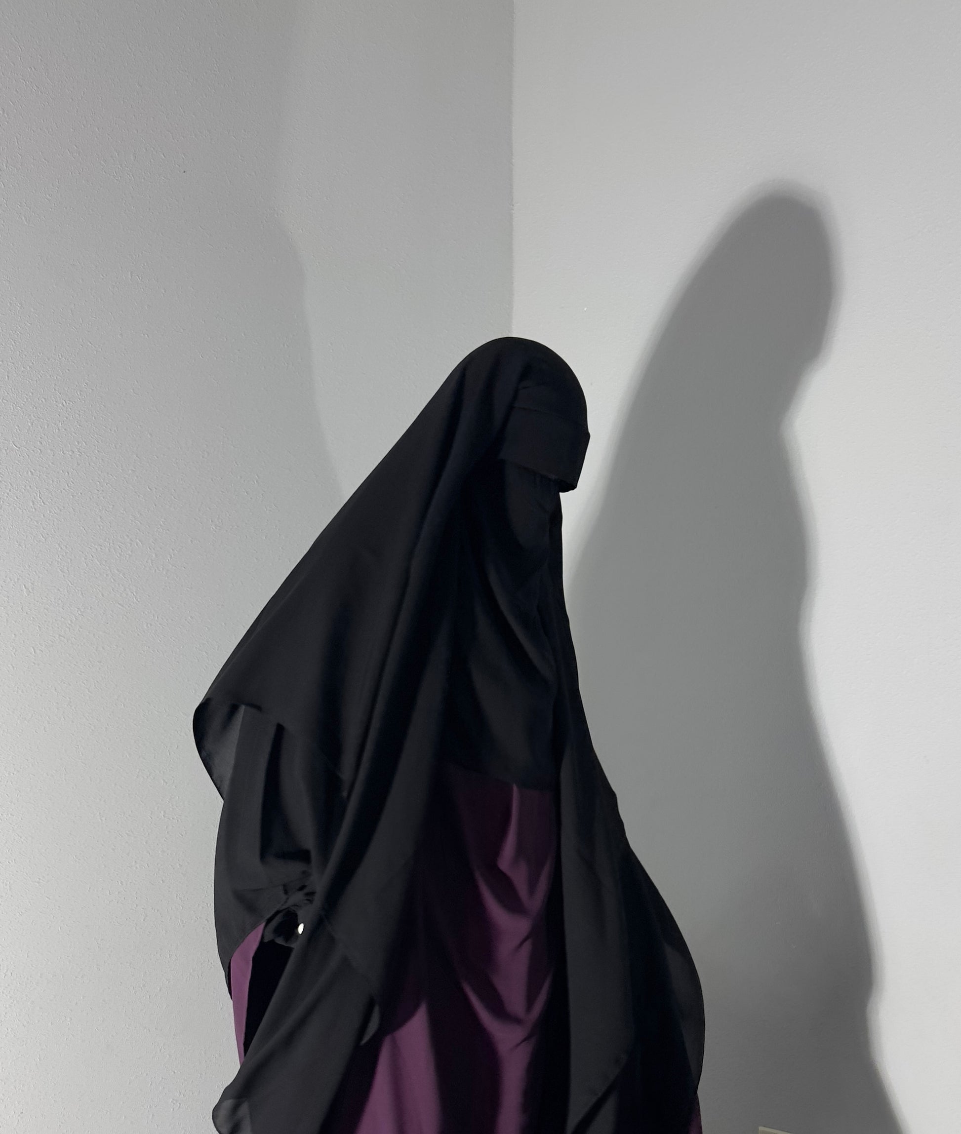 Our Maxi Yemeni Niqab features two layers for added coverage and nose string. It can also be worn as a khimar for a complete and elegant look.